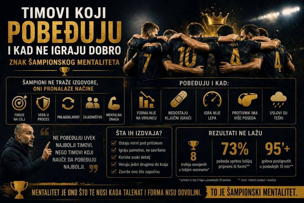 Tema šampionski mentalitet u fudbalu često se pogrešno svodi na praznu priču o “karakteru”. U stvarnosti, reč je o veoma konkretnoj sposobnosti da tim ostane funkcionalan i efikasan čak i kada igra nije na maksimumu. To je možda i najvažnija razlika između ekipe koja oduševljava i ekipe koja osvaja.