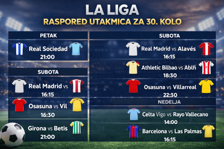La Liga 30. kolo donosi veoma zanimljiv raspored, sa nekoliko mečeva koji mogu imati veliki uticaj na rasplet sezone. Kolo...